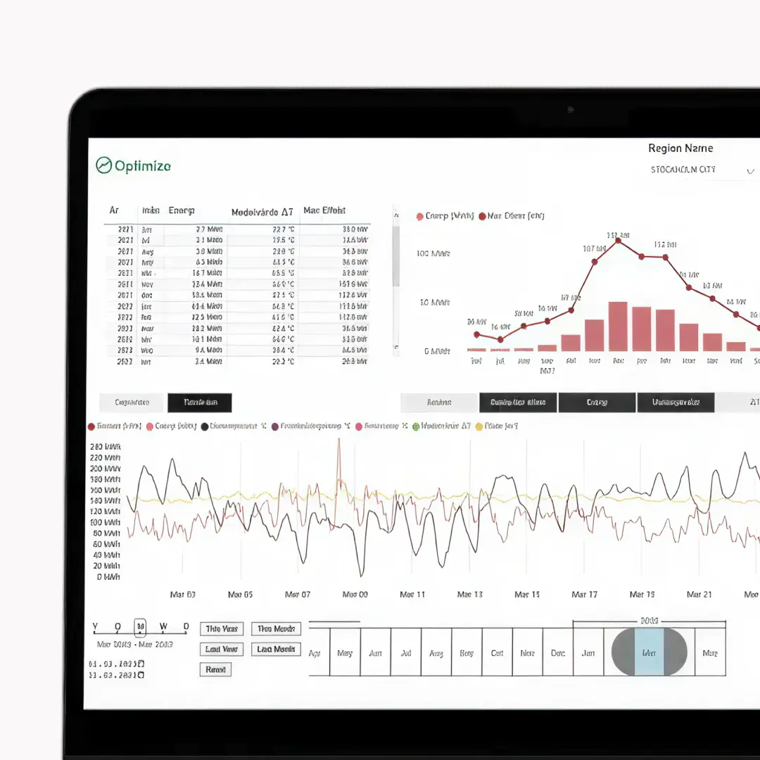 Optimize offers advanced portfolio scale energy and power analytics with hourly data of heating, cooling and electricity per building and on portfolio level.