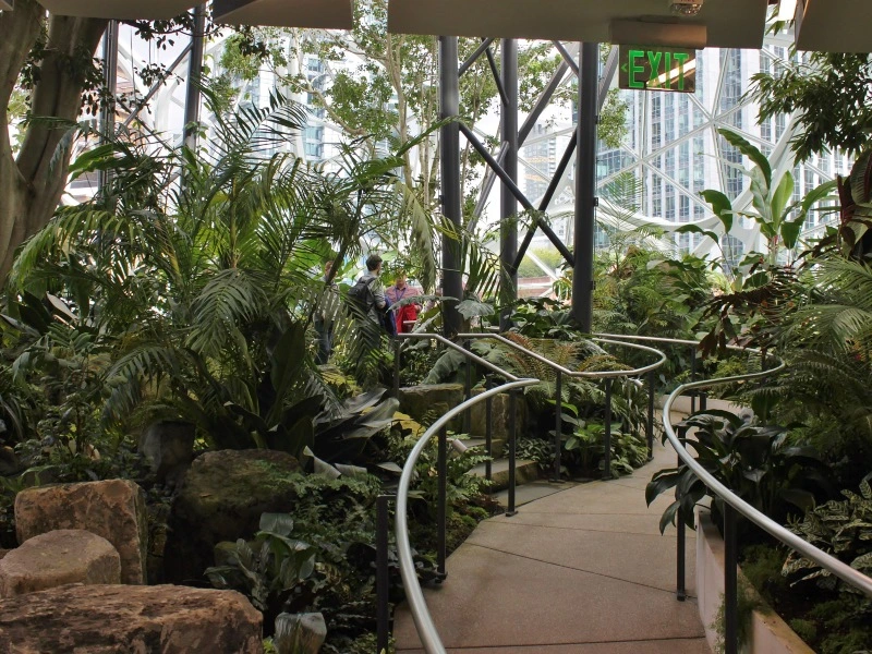Biophilic architecture such as this allows workers and visitors to reap some of the benefits that spending time in nature brings, despite The Spheres being located among the thriving urban landscape of Seattle.