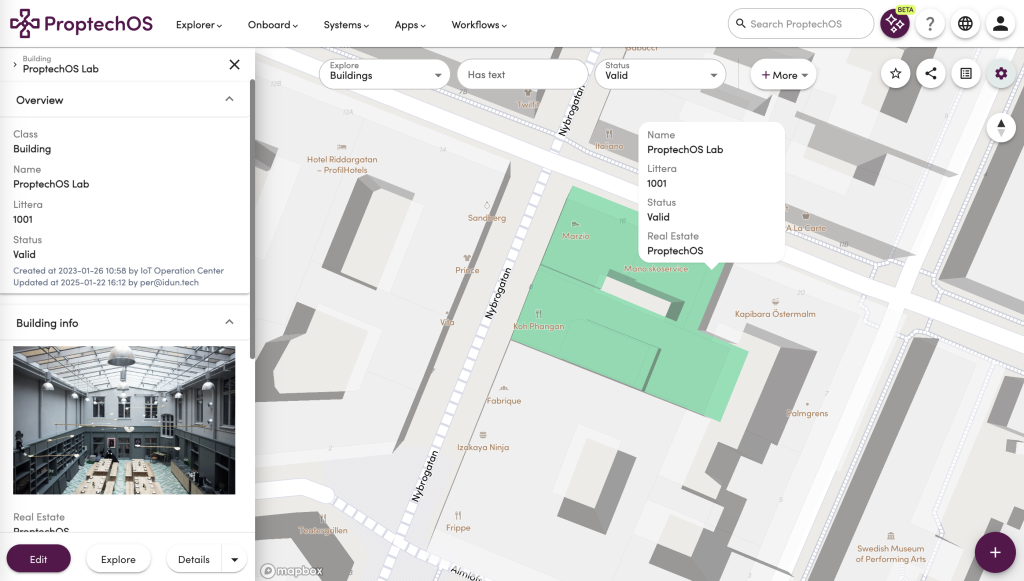 ProptechOS is a cloud-based operating system for real estate, built on the open-source RealEstateCore (REC) standard.