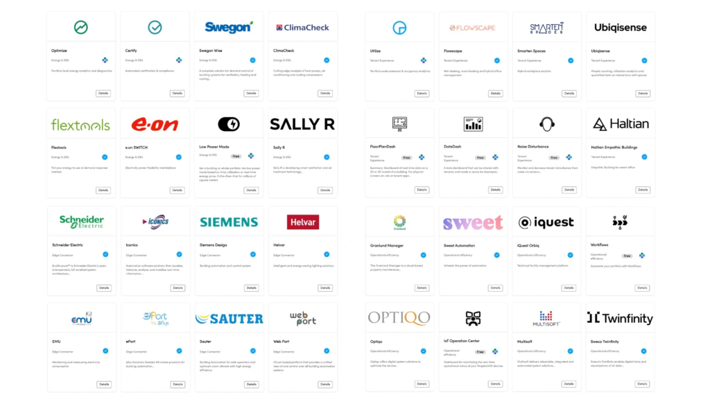 RealEstateCore-certified integrations enable plug-and-play functionality, reducing deployment time from weeks to hours. Apps can scale seamlessly across portfolios, ensuring interoperability between devices, buildings, apps, and cities. Machine learning identifies device issues, while harmonized data ensures flexibility—devices or apps can be replaced without disruption.