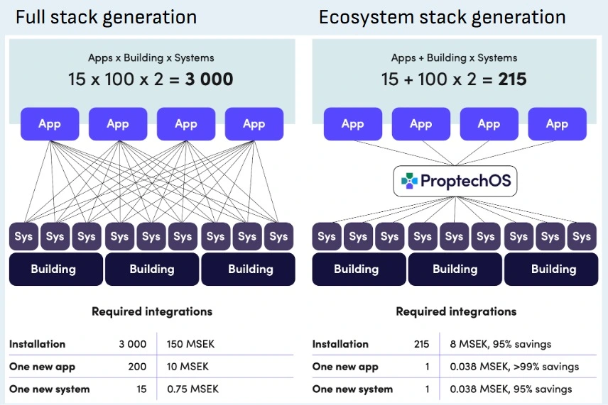 ProptechOS is a cloud-based operating system (OS) for managing building hardware, data, and applications, fully aligned with the RealEstateCore standard. It offers native features like provisioning devices, analyzing data, managing privacy, visualizing 3D buildings, and automating maintenance.