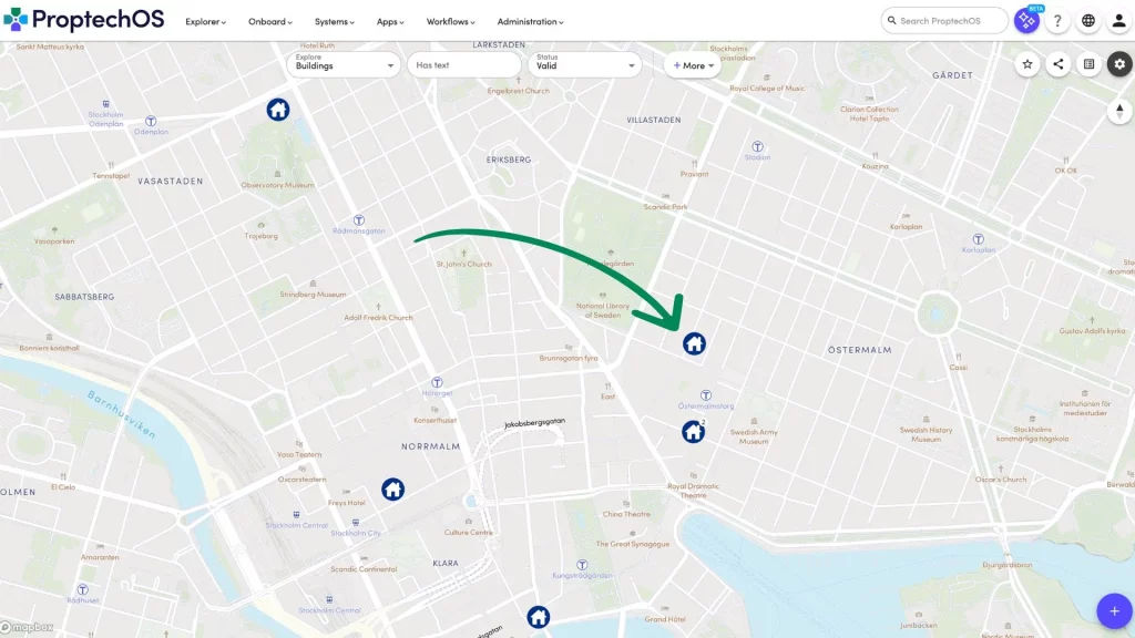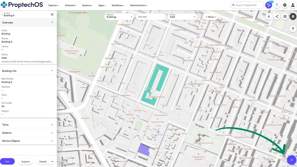 1. To create a Storey, first select the Building on the map where you want to add it.